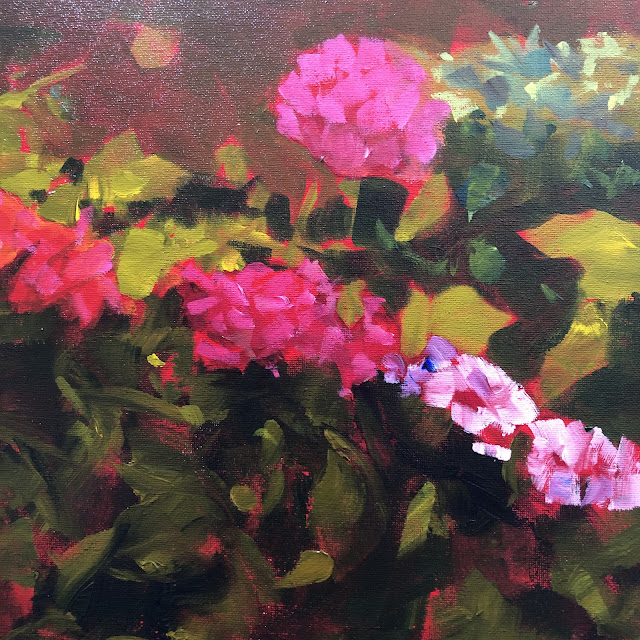 | "Yellow Roses" oil 36 x 18 by Jody Regan Our farmer's porch is a little slice of 3-season heaven. I love sitting there, watching the sun cross the yard while the birds visit. Every time I come home, I look forward to the time I spend there. These cut flowers greeted my this past week. |